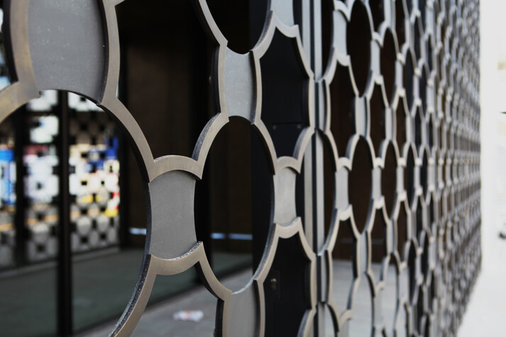 Der Vorraum des Baptisteriums erhält im Bereich der Natursteinfassade eine vierflüglige mechanisch zu betätigende Toranlage, bestehend aus 2 Drehflügeln und 2 Schiebetürelementen. Die Flügel werden als Stahlrahmenkonstruktion ausgebildet, auf denen Ornamente, die den Grundriss des Taufbeckens darstellen, befestigt werden. Die Tür wird flächenbündig in eine Natursteinfassade eingelassen, innenseitig schließen bronzene Wand- und Deckenverkleidung an.