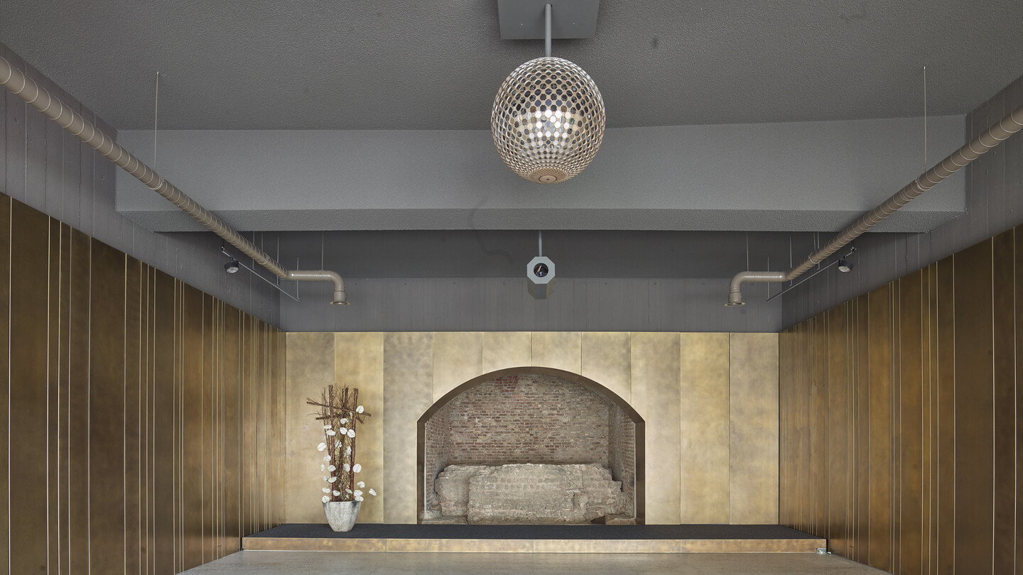 Das Taufbecken des römischen Baptisteriums auf der Ebene 0 erhielt eine großzügig sakrale Vorhalle und ist vom öffentlichen Gehwegbereich gut einsehbar.